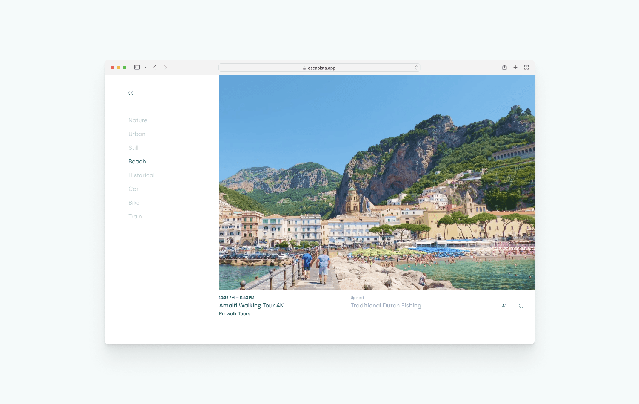 Video streaming website I built during the COVID-19 pandemic to help people stay home relaxing and exploring the world. Choose a channel and let your mind wander with the continuous stream of great Slow TV and ambient videos we handpicked for you. Relax with the natural images and sounds while you work, put on your TV or invite your friends to watch together.